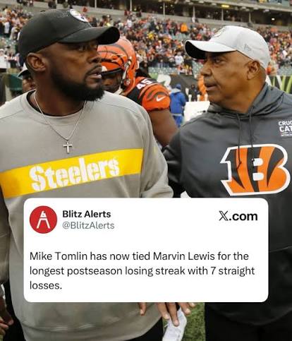 I deliberately put up the photo of him and Marvin Lewis with that stat. Lewis got a lot of flack for his lack of playoff success, whereas many give Tomlin a pass and assume he will be in high demand if his time in Pittsburgh ends. Nobody said the same of Lewis towards the end of his tenure in Cincinnati.