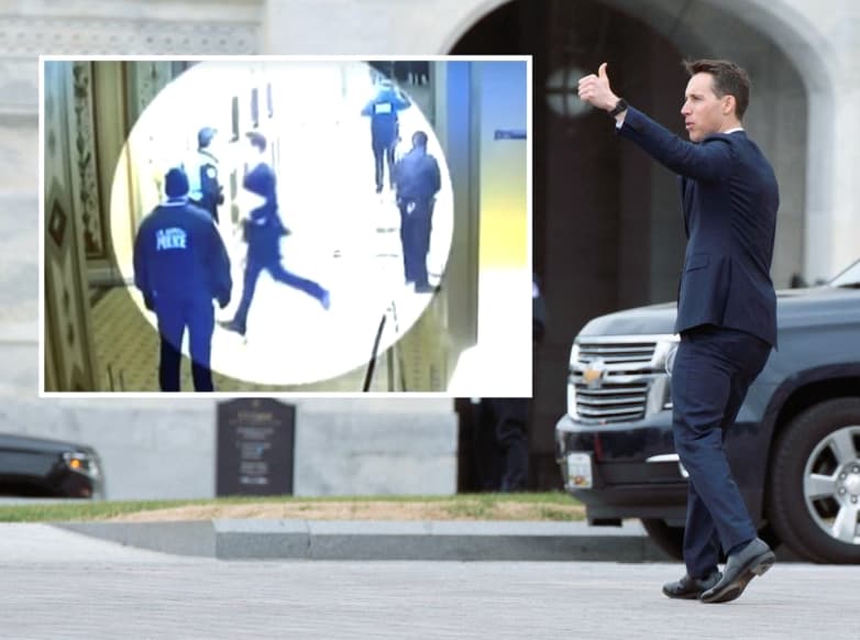 This is two pictures of Hawley, one where he is of the impression that the protesters were going to be peaceful. And one when they aren’t.