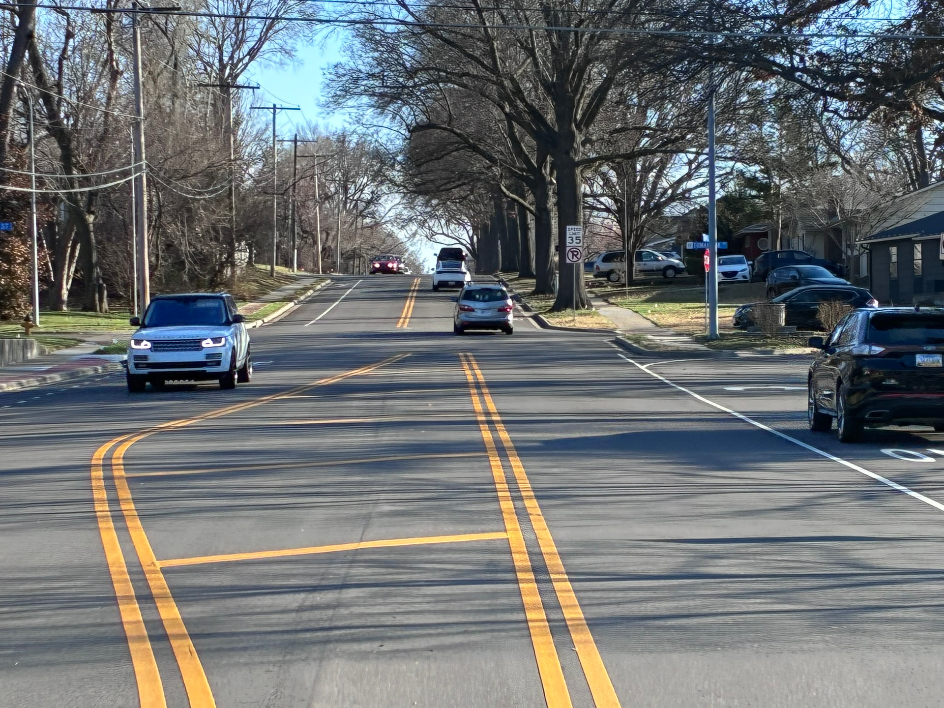 I was telling them situations like this are where cyclists piss people off by ‘taking the lane’, and we do that for our safety. Kansas law says a driver must give a cyclist 3 feet when passing. Kansas law also says a driver cannot cross a solid yellow line. And unfortunately, people tend to know the “yellow line” law more than they do the bike law. While there is room for someone to safely pass, four times in February alone I was almost hit here (I was not taking the lane). At any rate…making them aware of it is getting it changed.