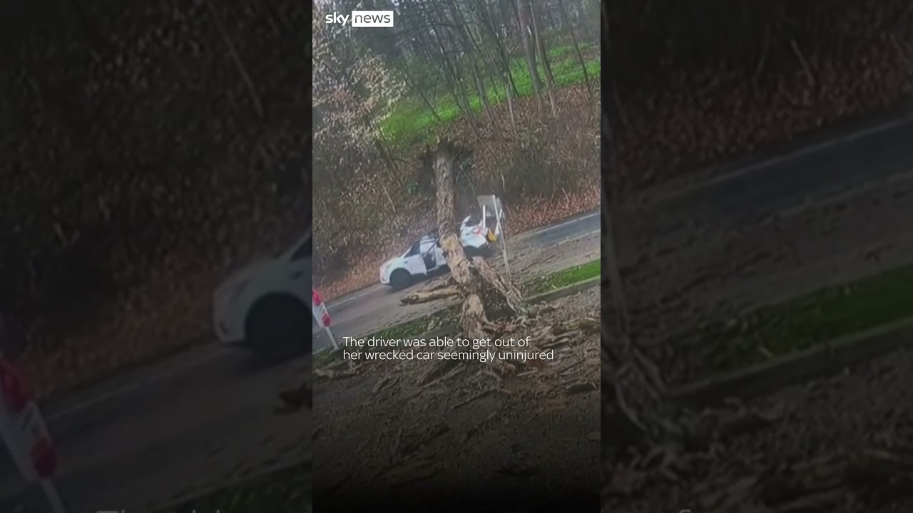 Whoever owns the adjacent property will have to write a large check. I can’t tell what make that SUV is, but I am impressed the vehicle held together that well.